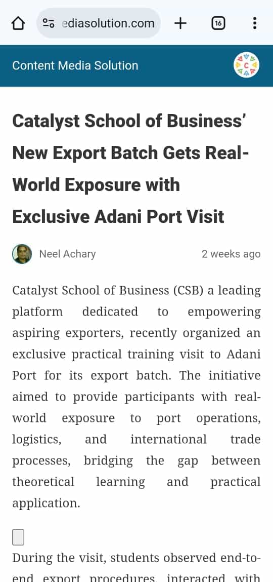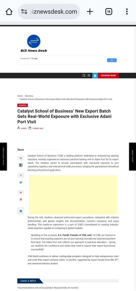- Understanding the Entire Export Supply Chain On-Site- Meeting with Custom Officials, Freight Forwarders & CHA